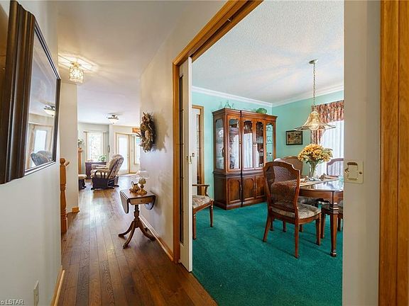This all brick ranch shows pride of ownership inside and out. Found on the exterior are beautiful gardens, deck, awning, shed, sprinkler system (Sandpoint). Built by one of Strathroy's premiere builders (Robson Homes), and features 3+1 bedrooms/3 baths, open concept great room, kitchen eating area and gas fireplace. Then for those special occasions and family dinners, enjoy the large dining room and living room. Lower level has separate entrance to garage (ideal for possible granny flat), along with a woodworking shop, bedroom/craft room and 2pc bath, could be 3pc. After all that here is a list of the recent updates 1) deck 2) windows 3)furnace and air conditioning 4) eavestroughs 5) garage door opener and new garage door 6) vertical blinds Located close to large stores, Walmart, Canadian Tire, bank, restaurants, LCBO, Caradoc sands golf, and easy access to the 402.
