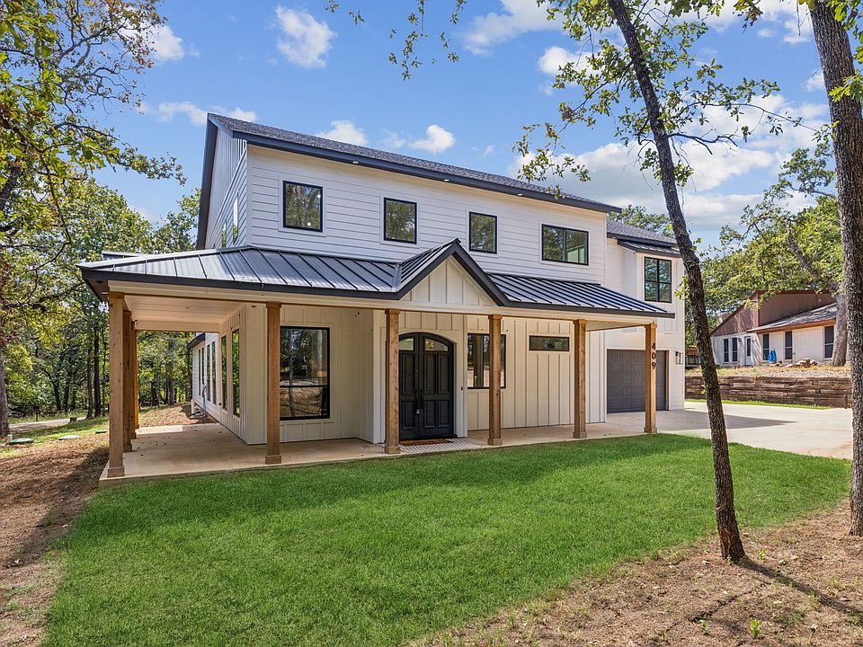 Welcome to this newly constructed home located in the highly sought-after Yacht Club Estates subdivision in Oak Point. Set on an expansive .442-acre corner lot, this home is surrounded by nature and just a mile from the shores of Lake Lewisville, offering a peaceful retreat. Step inside to be greeted by soaring 36-foot vaulted ceilings, an impressive 80-inch chandelier, and an open-concept floor plan designed for both comfort and style. The gourmet kitchen is a chef's dream, featuring a stunning 120-inch waterfall island, a gas stove, double ovens, walk-in pantry, and seamless flow into the living area, which includes a cozy gas fireplace. Ideally located, this home is minutes from the prestigious Prestonwood Polo Club and the Dallas Corinthian Yacht Club. Additionally, the oversized driveway provides ample space for boat or RV parking. Every inch of this property has been meticulously designed, offering the perfect blend of luxury and functionality. Come see this stunning home today!
