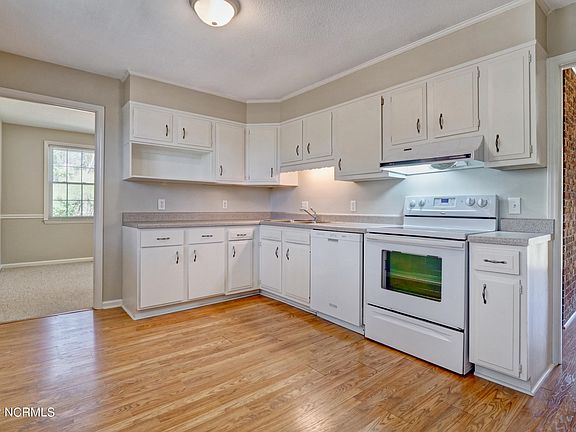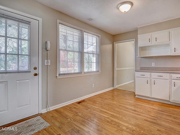 **Multiple offers received, deadline for highest and best offers is 8PM today, Wednesday 3/23/22.** Opportunity awaits for a charming 4BR/2BA brick ranch home in a wonderful central location. This home is located on a quiet cul-de-sac and offers very mature landscaping and a wooded, private lot! The double front doors open into a well sized foyer with laminate flooring. This area flows into a bright & large living room complete with a fireplace - a great spot for relaxing and entertaining! There is a formal dining room that is conveniently right off the kitchen. The sunny eat-in kitchen offers ample storage, an electric stove/oven and dishwasher. Also in the kitchen is a large alcove for a fridge plus additional storage and a laundry closet. Down the hall, find 4 spacious bedrooms and 2 updated bathrooms. The guest bath features a tile walk-shower. The primary bedrooms has 2 closets and an en suite bath with soaking tub w/ tile surround. This home offers a great outdoor space with a spacious wooden deck overlooking the private back yard. Storage for tools and lawn equipment is a cinch with the connected storage/utility room and the custom shed which conveys. Additional features include an alarm system, proximity to public transit, underground electrical and a newer HVAC (2018). Enjoy convenience to local shops/restaurants, I-40, Wrightsville Beach and the historic downtown! Schedule a visit and make it yours!