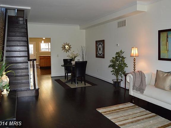 Huge Porch Front Home right on the Park. Open Floor Plan with 9' ceilings, beautiful drk wood flooring, spacious kitch w/plenty of granite counter space & breakfast bar, SSL appls. Huge master bdrm facing the park, priv Mastr Bath with dual vanity, skylights in both UL baths, 2nd level laundry, fin. basement. Excellent view of Patterson Park & Downtown from Roof Top Deck. Parking is easy!