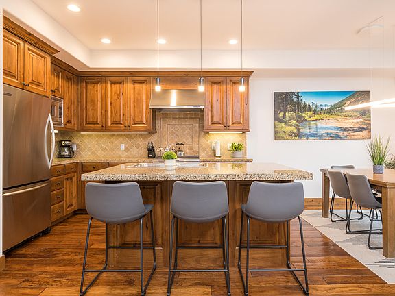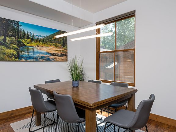 This totally turn-key end unit with views of Baldy enjoys the privacy of a home with the convenience of a townhome. The proximity to downtown Ketchum and the mountain make it the diner's and skier's dream. Listen to the sounds of Trail Creek from the deck and primary living spaces. 2 primary suites on the upper level with vaulted ceilings, updated Vibia lighting thru out & 2 car garage.