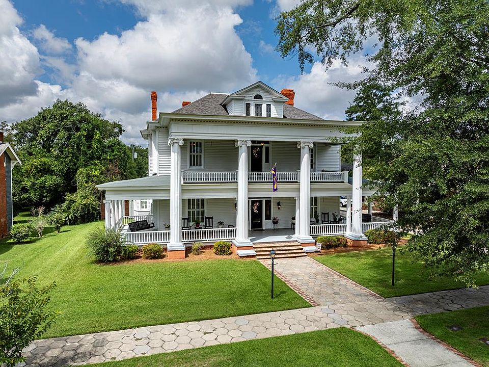 A Southern Masterpiece-Some homes make an impression.This one makes history.Rising proudly with its stately columns & timeless antebellum design, this estate is more than a residence —it is a landmark of elegance, hospitality, & Southern grace. Meticulously updated, it offers over 4,700sqft. of refined living space while preserving the grandeur of its 12-foot ceilings, sweeping staircase,&gleaming wood floors.A chef's kitchen with granite, oversized refrigerator, & 3 ovens set the tone. The first-floor master suite features a spa-like tile shower, while upstairs offers 4bedrooms, 3baths& a living area. Outdoor living rivals a private resort: heated gunite pool, hot tub, courtyard, & 728sqft. pool house with bar, fireplace, grill & outdoor shower. A detached garage includes a half bath. Plantation shutters, tankless water heater, new 2025 roof &countless upgrades add comfort &value. Beyond a residence, this estate offers a perfect setting for unforgettable weddings and events. Call NOW!