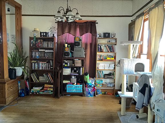 This home is conveniently located within walking distance of shopping, dining, parks, and the library. Would make a great home or investment property. Home has 3 bedrooms and 1 bathroom it featuring a generous living room and dining room with 10 ft. ceilings and original wooden pillars. The kitchen, bedroom, and full bath finish off the main level. 2 more bedrooms, one with its closet located just outside the door, complete the living space upstairs. The Carriage house/garage and dry basement provide extra storage and laundry hook ups.