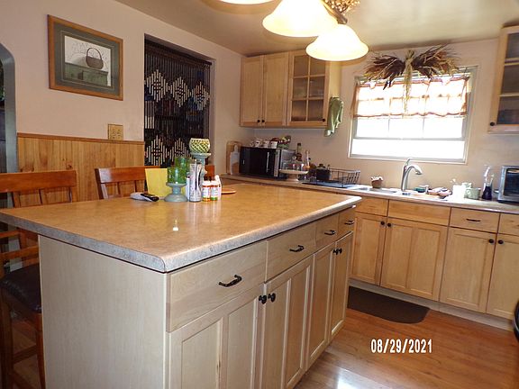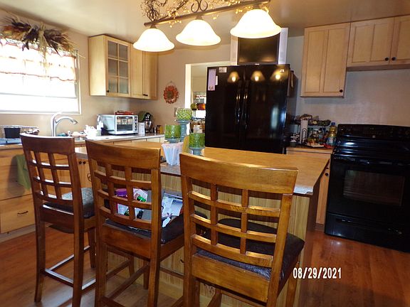 So affordable and in great condition. Open living room and dining room, remodeled kitchen with nice pantry. two bedrooms plus an office. Appliances included, plenty of off street parking, Carport, full basement underneath for ample storage. Perennial flower beds, rose bush and strawberry patch mixed in. Roof new in 2016, newer electric. Washer and Dryer located in bathroom. Back Porch/Mud room leads to a back to a private deck, And of course, everyone enjoys a front porch! Plus dog pen. Shared Driveway