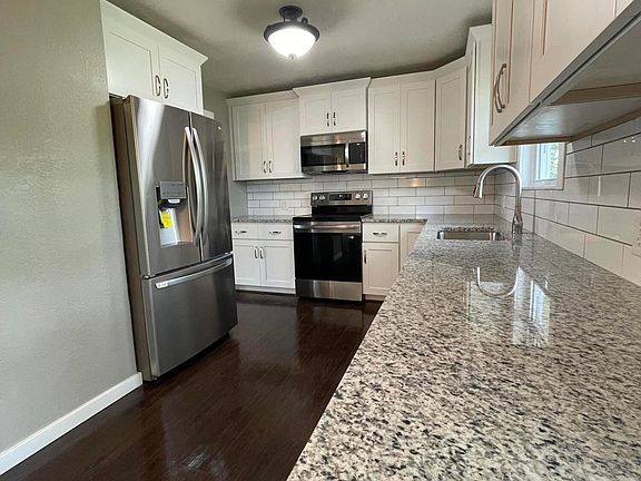 Back on the Market at no fault of the Sellers. Look no further this homes for you! Beautiful fully remodeled 3 bedroom 2 bath. Kitchen has custom cabinets, granite and all appliances, including a French door refrigerator. The bathroom has matching granite and tile for its double vanity sink and a fully tiled custom shower with niche. New light fixtures, new carpet and laminate floors throughout home. The exterior of the home has new siding and you can enjoy the over sized back yard with privacy fence while entertaining on the deck.