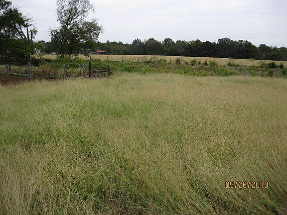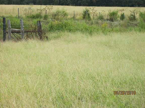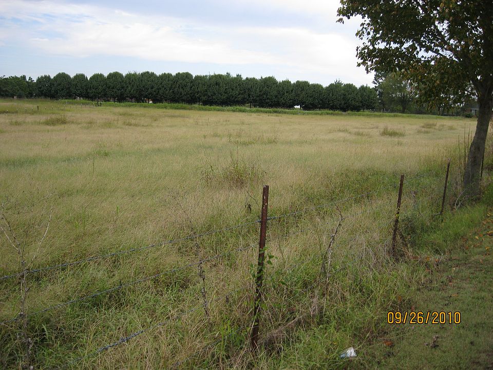All 9.9 acres is flat. Back of property is private, surrounded by woods, ditches and gullies. Includes utility pole for mobile home. Land improvements includes power, water, septic tank and driveway. All acreage is fenced, separate fence for house lot.