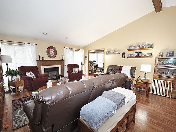 Cute ranch home with 3 bedrooms, 2 full baths and a basement. This corner lot home has a fenced yard. Nice and bright with 3 skylights. Vaulted ceilings give this such an open floor plan. Cozy fireplace n the family room. Laminate flooring. Roof & siding approx 12 yrs old. Furnace and A/C approx 10 years old. Remodeled kitchen with stainless steel appliances approx 5 yrs old. granite counters, ceramic tile backsplash. New Washer & Dryer. Updated bathrooms with Master bath suite with tub and separate shower. Master Bedroom fits a King size bed easily. The basement is semi-finished with plenty of storage. Garage heater approx 8 yrs old. Front porch has Trex 2019. Leaving patio table, chairs, and new cushions. Along with LP gas grill, cushions storage box and extra storage box. Located near shopping, restaurants, parks, schools, with easy access to the expressways.
