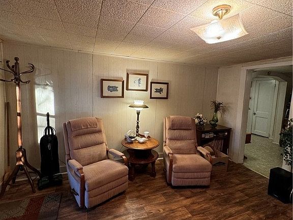 separate dinning, kitchen , Lg utility /Second bath . ramp at back door entrance into utiltity room , 3 storage buildings , storm cellar . detached carport, with electric for R.V. What more could you need !