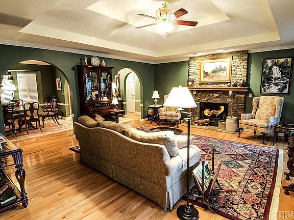 Perched in the trees in desirable Highlands Falls Country Club, this spacious home is located in a quiet area that offers a respite from all cares and worries. Sit out on one of two spacious decks and relish the sounds of the stream while gazing over the low-maintenance yard, the back of which borders the Nantahala National Forest, Highlands largest back yard! Grab a book and enjoy snuggling next to one of two fireplaces on chilly days. The main level of the home features one-level living with hardwood floors, plenty of light, a fabulous office and a split floor plan that allows for privacy for all. The large owner's suite is complete with a generous bath with a soaking tub, double vanities, walk-in shower and walk-in closet. Enjoy the privacy of sipping a cup of coffee and enjoying mountain breezes on the deck from your own private entrance from the owner's suite. The rustically finished lower level features a separate entrance from the two-car garage and a boasts a sprawling In-law suite that includes a split floor plan with bedroom on one end and a bonus room on the other, a full bath, a generously-sized family room with a fireplace, a kitchen and its own private deck. This offers great rental potential! Beautiful gated Highlands Falls Country Club, where membership is optional but desirable amenities include a recently remodeled clubhouse, golf, tennis, pool and a fantastic fitness center that overlooks the greens. A wonderful home in such an appealing community, only minutes from downtown Highlands!