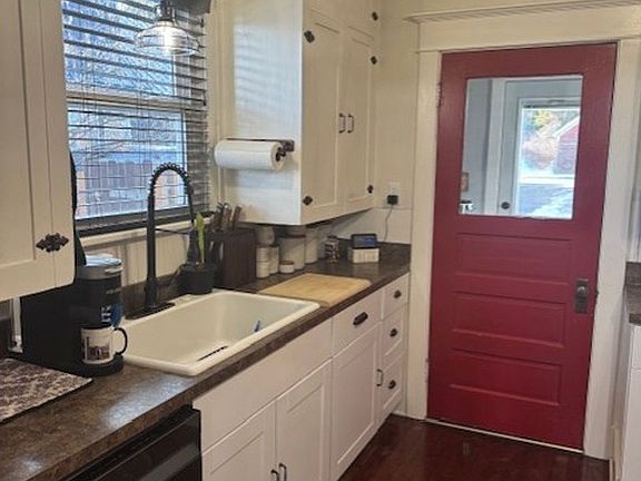 This home is so cute and put together. Some classic charm to still admire and many upgrades such as the kitchen and baths! Original hardwood floors, decorative posts add a nice accent between living and dining area. White newer cabinets, dark accents and hardware, farm sink, black appliances. Great cabinet space! Accent red pantry will stay for added storage. 2 bedrooms and bath on main level, additional bedroom upstairs. Good sized living room with a wall of windows to watch the sunrise! Pellet stove will heat the entire home, otherwise baseboard back up. Cute yard, alley access to home. Detached 1 car garage. Prefer no pets, but may consider established smaller dog. Prefer 12 month lease but may consider different term, no smoking, tenant to maintain yard and pay all utilities. Move in 3/1! This one will go quick!