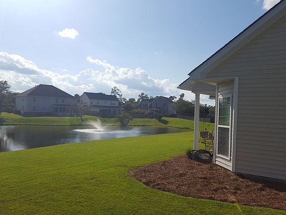 Lagoon views abound from this beautiful brick front home. Desirable split family floor plan, open concept kitchen and soaring ceilings make this home airy and bright! Great opportunity to own this well maintained home with many upgrades--Beautiful hardwood floors throughout all the living areas. Separate living room, dining room and large family room off the kitchen make entertaining easy! The spacious master has large master en-suite bath with double vanities, separate garden tub and shower and walk-in closet. Enjoy community amenities- pool, tennis courts and playground.