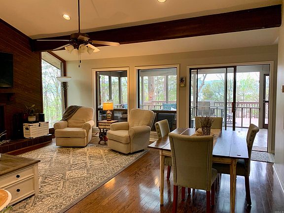 Sensational seasonal views of Greers Ferry Lake on Eden Isle. The living area has a cathedral ceiling with stunning wood beams and a fireplace. Hardwood floors throughout this 3 bedroom, 2 bath resort home on Stony Ridge South. The spacious screened in patio and deck are perfect for entertaining. It's only a short golf cart ride to Eden Isle Marina or Red Apple Inn Clubhouse.