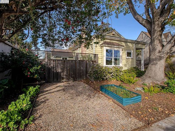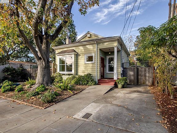 Located on a tranquil, tree-lined residential street in Alameda's West End just minutes from the many amenities on downtown Webster Street, this sweet 1910 bungalow offers both vintage charm and exceptional expansion potential. Situated on a deep, oversized lot with mature fruit trees and landscaping, the property is ideal for a home addition and/or an ADU or in-law cottage for family, a home office or possible rental income. This cozy, welcoming home presently includes 2 bedrooms, 1 updated bathroom, traditional living and dining rooms, a pantry/mudroom and a large, remodeled kitchen with quartz counters, stainless steel appliances, abundant kitchen cabinets/storage and sliding doors that open to a spacious backyard deck. Vintage features include hardwood floors, picture rails and a brick fireplace. Includes plenty of off-street tandem parking, as well as a detached garage. This great West End location is just 1/2 mile to Webster St and the Alameda Farmers' Market and a quick 5-minute drive to Washington Park, Crown Memorial Beach and the SF Ferry. Don't miss!