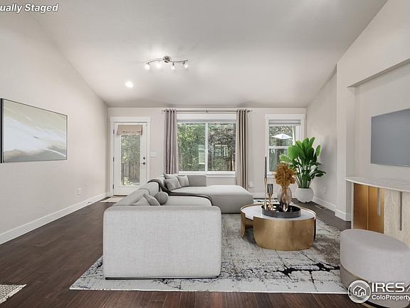 Location and lifestyle converge beautifully in this turnkey townhome, set just two blocks from Main Street in Longmont and three blocks from Roosevelt Community Park. With dining, shopping, and community life right outside the door, this residence blends convenience with comfort in a setting that feels both welcoming and accessible. Inside, thoughtful design and abundant natural light define the open floor plan. Warm wood flooring, brand new carpet, neutral tones, and expansive windows create a bright and inviting atmosphere that feels immediately at ease. The kitchen is designed for both function and flow, featuring stainless steel appliances, granite counters, recessed lighting, a pantry, and a prep island with seating that makes everyday meals simple and social. The dining and living areas connect seamlessly, offering sensible space for gathering while maintaining a relaxed energy throughout the home. Upstairs, the primary suite is airy and inviting, with vaulted ceilings, a generous walk-in closet, and a private ensuite bath with a glass-enclosed shower. A second-story balcony extends the living space outdoors, offering a quiet perch for morning coffee or evening reflection. Additional bedrooms and a finished basement provide flexible living options, with a spacious family room that opens to the secured lower-level private patio-an ideal low-maintenance space. Practical conveniences, including an included washer and dryer, add ease to daily routines, while the low-maintenance design makes this home a sensible choice for both full-time living and lock-and-leave simplicity. With its prime location near the heart of Longmont's vibrant downtown and its thoughtful interior flow, this townhome offers a lifestyle defined by connection, comfort, and convenience.