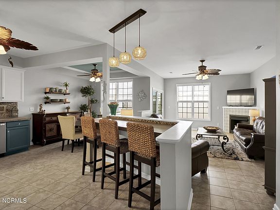 Location Location Location! Be on the beach in 5 minutes from this updated home. White and blue cabinets, glass-tiled backsplash, custom concrete countertops, tiled floors, sit-down bar accented with hanging pendants, a large formal dining room with treyed ceiling all open to great room with fireplace large enough for all the friends that will visit you at the beach. Tastefully upgraded fixtures, ceiling fans and accents. Cozy, covered back patio with string lighting to create the mood and additional upper screened balcony, with outdoor bed/lounger, rug and sheers makes it perfect for that private time. Spacious master is anointed with a walk-in shower, large jetted bathtub, tiled flooring, dual vanities and spacious walk-in closet. Low maintenance leaves you plenty of time to lie around the pool, go to the beach or just do your island thing. Easy walk to shopping, dining and everything the island has to offer