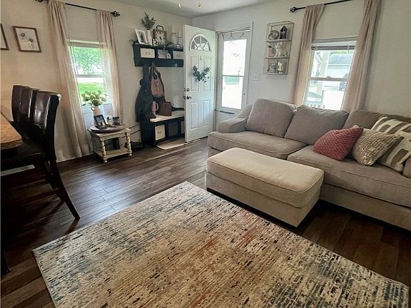 Truly MOVE IN READY!! This charming, updated 2 bedroom, one bath home is the real deal! From the moment you step inside, you’ll appreciate the open concept living room and kitchen area that feel so welcoming and homey! Outside you’ll enjoy the large, newly re-stained deck with all around seating perfect for entertaining and barbecues! As an additional bonus, sellers added a backyard fence to help keep your littles or fur babies safe. Storage shed, range, refrigerator and microwave will stay! Make your appointment to view your new home today!