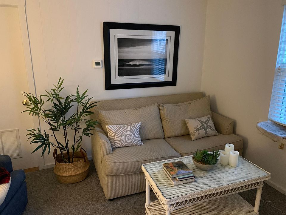 Available for weekly or monthly duration. $2500 per week/$9500 per month. Picture- perfect lakeside beach cottage with private yard. Immaculately clean, newly renovated perfect for single person or couple. LR, kitchen, 1 BR/queen bed, laundry room & private yard with grill. Includes 2 season beach badges. Directly across from wooden footbridge, lake and Divine Park. Walk over bridge into town; 3 blocks to beach. 3 blocks from train station. $2500 per week including utilities $9500 per month Flexible terms Utilities included 2 badges included Extended dates available