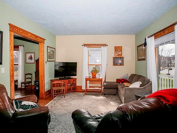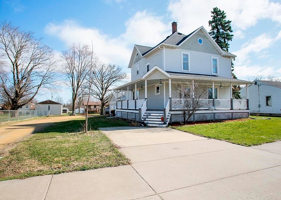 Spacious 2-Story home featuring a wraparound open front porch, hardwood floors throughout, 3 bedrooms (upstairs primary bedroom includes a bonus rm), 2 full baths, kitchen with new appliances in 2024 and an extra room attached that could be used as a pantry, large living room open to the dining room, 2 stall attached garage and a fenced-in backyard. Full, unfinished basement that has plenty of room for extra storage. New Furnace and A/C in 2024. For a list additional updates see Associated Docs.