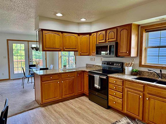 This home is a must see! Immaculate, well maintained, zero lot home, move in ready! There are no steps at the front entrance or from the garage. So much natural light, and a beautiful backyard that you can enjoy from the deck or the patio below. The living room boasts vaulted ceilings and beautiful windows beside the fireplace, giving way to a relaxing view as you enter the home. The large open kitchen has been updated with quartz countertops & sink. All of the appliances including W/D are newer, see notes/d below. The kitchen opens to the dining area, with access out to the deck & backyard. Off of the kitchen & near garage is a large laundry room, with a pantry. The bedroom at the front of the house, would be a perfect office, den or guest room. The primary bedroom has two closets, one of which is a large walk in! The primary bath has a newer walk in shower & flooring. The lower level is set up great with a full bath, bedroom & large family room, that walks out to the patio & back yard. For those looking for a workshop, there is one here! Great storage too! The current owners have been on top of the maintenance & the needed repairs of this home. The landscaping is beautiful, so many lovely perennials to enjoy. If you are looking for a new home, with fewer steps & a little less space to maintain, this place is for you!