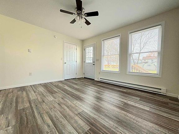 This beautifully updated home is move-in ready, offering tons of off-street parking, a huge backyard perfect for gatherings, and a host of modern upgrades. Inside, you'll find new flooring, a remodeled kitchen with sleek stainless-steel appliances, and updated bathrooms. The first floor features a convenient bedroom , full bath, 1st-floor laundry, and a sunroom with a walk-in storage closet—ideal for extra space or seasonal items. Upstairs includes two additional bedrooms, a second full bath, and a versatile bonus room perfect for a home office, hobby space, or playroom. Recent updates provide peace of mind with a new roof, siding, vinyl windows, and a newer economical natural gas furnace. Brand new central air ensures year-round comfort. Relax on the front and back porches or take advantage of the spacious backyard for outdoor activities. Close to amenities & low maintenance!
