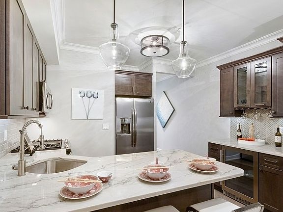 Incredible luxury building. Elevator building, hardwood floors, deluxe SS appliances, quartz counters, wine fridge, washer and dryer in basement for each unit, storage cages for each unit. Gym in the building.