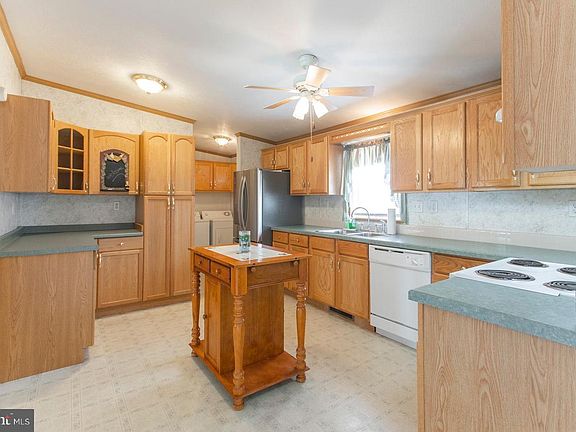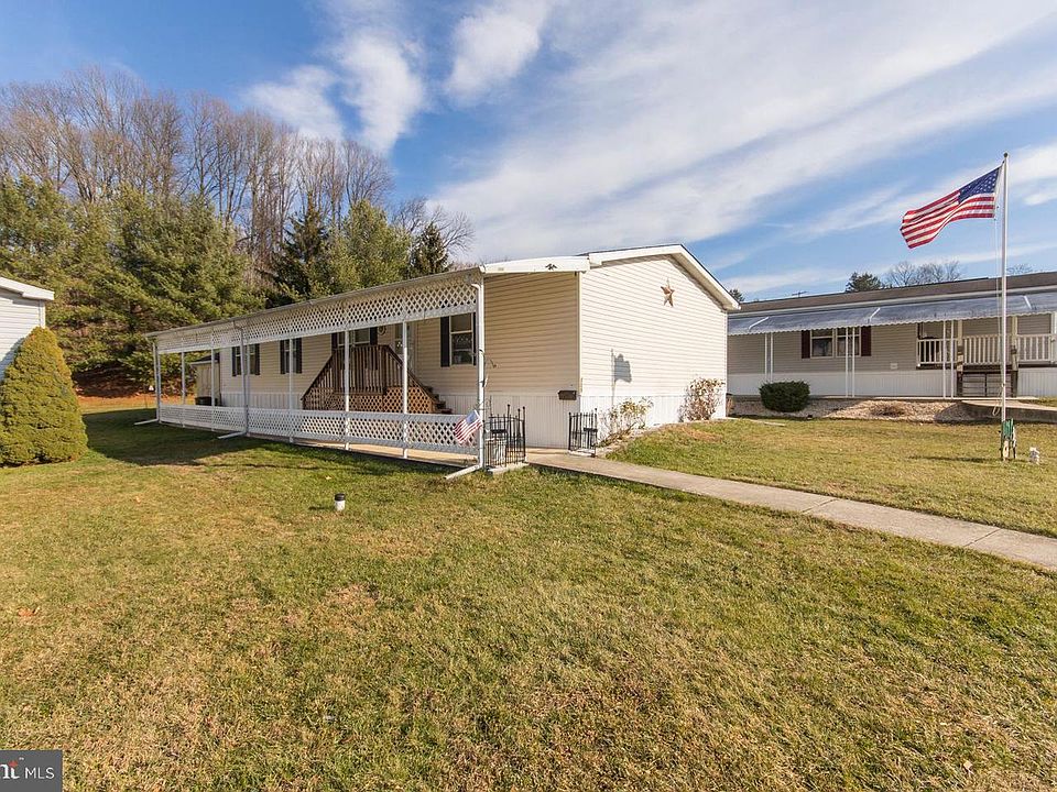 Rarely does a DOUBLE Wide manufactured home come available in the Village Green Senior Community! Lcated on a cul de sac street across from the pond, this oversized home has the feel of a sprawling Ranch with so much space and tons of closets!!! Set up so a handicapped ramp can easily be installed. Park right in front and enter through the covered patio and deck. Living room, Dining room, large Eat-in kitchen with island and plenty of cabinets, 1st floor Laundry with OE to a rear deck and utility closet off the laundry. At the far end is a generous Master bedroom with Master Bath, walk in closet, and separate Office/dressing room/workout area! The opposite end features 2 additional bedrooms, both with walk in closets and a full bath w/tub. Brand new w/w carpet just installed. Rood replaced approx 5 to 7 years ago. Nice storage shed also included! Ground rent includes , Sewer, Trash removal and Roadway snow removal. All buyer's must be approved by the Village Green Community prior to purchase.