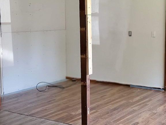 1 bedroom house on a slab with detached two car garage. New laminate in kitchen, bathroom & living room. Would make a great remodel ,starter home, or rental.