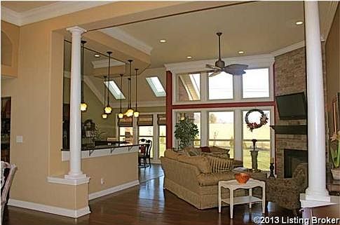 Gorgeous 3 bedroom 3 bath brick walk-out ranch. Fabulous open floor plan, large columns, gleaming hardwood floors. Spacious vaulted great room with fireplace, lots of windows and skylights. Gourmet eat-in kitchen with rich custom maple cabinetry, granite countertops, tile backsplash and top of the line appliances. Banquet sized formal dining room, romantic master bedroom with trey ceiling and luxury master bath featuring double vanities, walk-in shower and jetted tub. There are 2 more spacious bedrooms, full walk-out basement, and 2 1/2 car garage. Situated on a large lot in sought-after award winning Oldham County School district. You owe it to yourself to see this one!