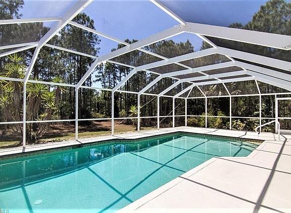 Enjoy country living and peaceful setting in this lovely upgraded pool home on 1.59-acre lot overlooking beautiful mature trees. Home comes with an oversized 2-car gar & workbench and has an open concept, many appealing extra features such as soaring vaulted ceilings, diagonal tile floor, French doors, upgraded light fixtures, motion sensor lights outdoor, custom made solar shades & hurricane shutters, built-in stereo system throughout, freshly painted outside. Large kitchen w/butcher block island, stainless steel appliances, granite counters, trash compactor, under cabinet lights. Bedrooms suite on opposite sides. Spacious living/dining+family rooms and master suite w/2 large walk-in closets, Jacuzzi tub, walk-in shower, her/his sinks. 14x28 Pool w/solar heating & outdoor shower, keystone deck, alum screen enclosure. Tube pest control system. Lime/lemon trees. Gravel driveway. ***Collier Enterprises is planning a visionary new community next door featuring the best of Florida living known as Rural Lands West where residents will enjoy a wealth of recreation and wellness opportunities, along with an abundance of shopping, dining, entertainment and other conveniences. See Video.