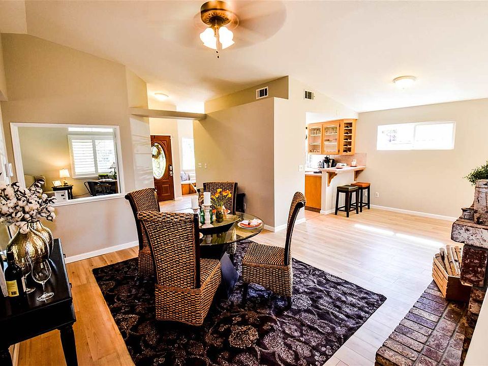 Priced to sell with motivated sellers. Single story bright and cheerful 4 bedroom 2 bath, 2 car garage home in a great established neighborhood, close to all ammenities, lots of natural light with a ton of windows and a spacious, private backyard with shed out back. Freshly painted inside, new laminate flooring throughout, new energy efficient roof, new owned solar panels with warranty, a Vivint security system, Lennox air conditioner, new microwave, cozy fireplace, window nook/bay window, two separate living room spaces with lots of room for a family. Perfect for a 1st time home buyer or investor at a great price for over 1800 Sq Ft with a lot at over 6600 Sq Ft.