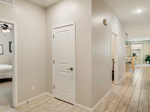 Step inside this incredible home and be prepared to fall in love. This great room floorplan has 4 bedrooms and two bathrooms. Beautiful chefs kitchen offering upgraded cabinets, granite countertops, gas cooktop, and a subway tile backsplash. The dining area showcases a custom feature wall and lots of natural light. The master bedroom overlooks the expansive backyard, and the bathroom has a stunning walk-in shower with floor-to-ceiling tile and double sinks. Outside you'll find a large lot with an RV gate and low maintenance turf backyard. This almost new Meritage home offers energy efficiency and beautiful design . The gated community of Archer Meadows with its fabulous pool and clubhouse is the ideal place for socializing with your new neighbors. You will also enjoy disc golf, basketball, and tot lots throughout the community. Archer Meadows is located just outside of Queen Creek, only a few minutes from the SR24 at Ironwood, or US 60 just a few miles North.