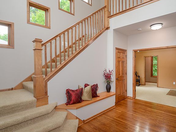 First time offering of this executive two-story set on a private .57-acre lot! Custom-built by Lundgren Homes, this property showcases pride of craftsmanship and ownership throughout—genuine wood floors, millwork and doors, Andersen Low-E Argon windows, custom built-ins, two fireplaces and inviting front and rear porches. The welcoming covered concrete porch leads into a two-story vaulted entry filled with natural light. The open main floor features both formal and informal dining, a well-designed home office, and a cozy three-season porch overlooking the expansive yard. Upstairs you’ll find four generous bedrooms and laundry, with a wonderful owner’s suite to enjoy. The walkout lower level with poured concrete walls, rough-in bath, and high ceilings offers great storage and flexible use now and expansion potential to over 4,100 finished sq. ft! A new roof (2019), and with an acceptable offer, new carpet and a home warranty offer peace of mind. Mature trees, beautiful fall color, and a convenient location close to dining and shopping make this an opportunity you don’t want to miss!