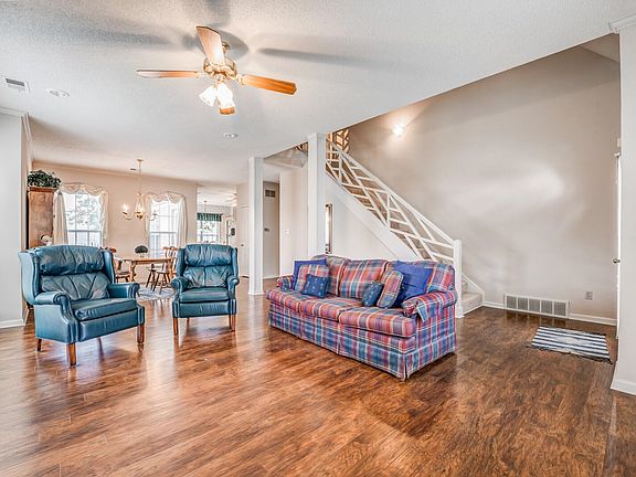 Beautifully maintained home on Quail Ridge golf course! Open light filled floorplan! High ceilings in entry, great room and dining room with hard surface flooring! Darling kitchen with built in buffet cabinets in breakfast room! Small area is iron-fenced for children or pets, but property extends all the way to the golf course! Primary suite down with en suite bathroom, plus halfbath down for guests. Two bedrooms and full bath up! Don’t miss this beauty- affordably priced and on the golf course!