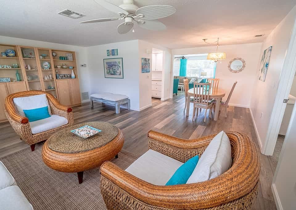 2 bedroom, 2 bath with PRIVATE POOL! We love the Florida Gulf Coast and so will you! Splash in the clear blue Gulf waters at one of the several nearby beaches-Venice, Caspersen, etc. Chairs, towels, umbrella, cooler and sand toys are provided for you with this rental! Come home to your beautiful screened lanai with heated pool for refreshing relaxation after a day of sightseeing or beach-bumming. An outdoor dining table (seats 6) is perfect for those nights you'd prefer to eat at home. The fully equipped kitchen has absolutely everything you'll need, and overlooks the pool. Our comfortable open living room is equipped with a 50" TV and free WiFi is provided for our guests. The home is decorated with a coastal vibe and unique furnishings. You're in Florida now! The master bedroom is furnished with a king-size bed and the guestroom has a trundle and bunk combination. The garage is supplied with all the necessities required for a day at the beach and includes two bicycles if you'd like to explore the Legacy Bike Trail that goes from Venice to Sarasota. And there's a fully equipped laundry too! Our vacation home is close to shopping, dining, boating, fishing, hiking, biking and golf. Downtown Venice, a palm tree-lined village with quaint shops and many fine restaurants, is only a short 10 minute drive. Venice, Florida is the shark-tooth capital of the world, and many beachcombers find these hidden gems while strolling along the water's edge. We hope you love it here as much as we do! Florida living at its best!