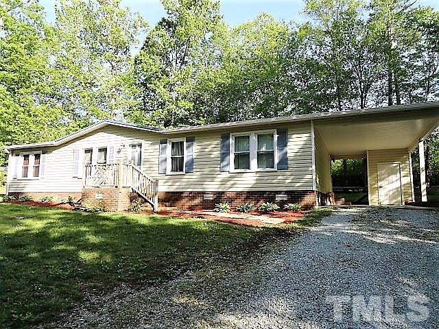 : COUNTRY LIVING AT ITS BEST!!! Situated on 1.09 acres with deck, large backyard in a private wooded setting. Inside you will find 3 beds, 2 full baths and 1350 sq. ft. w/ open floorplan, kitchen w/ island and SS appliances, vaulted ceilings and carport. Newer HVAC installed. For more information or to schedule a showing please call listing agent Alisa Thomas at 919-322-8970
