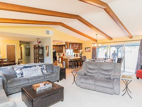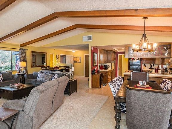 If you are looking for a place to call home in a wonderful community, this is it. This well designed home boasts an open beam ceiling and expansive living room. The living space also opens up onto the outdoor living space. The kitchen is well designed, looks out onto the backyard and also has a built-in desk. Each of the two bedrooms are light, bright and airy. The bathrooms are roomy too. The front yard has an impressive,mature oak tree and wonderful front porch to relax on. Stepping out into the backyard brings one a peaceful feeling and the views of blossom peak are breathtaking. There are multiple fruit trees in the yard which is over 1/2 an acre. This home is a must see!