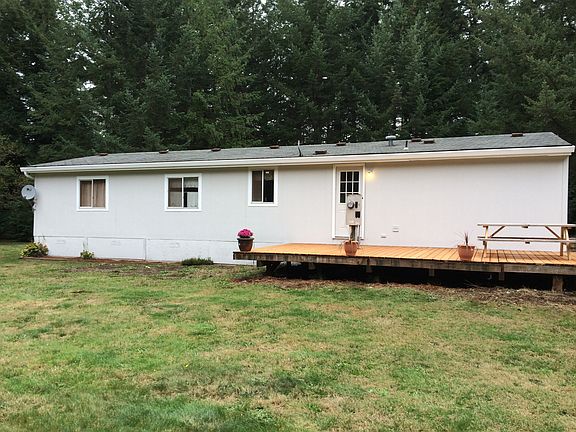 Peaceful! 1400+/- Sq. Ft. manufactured home on 1.5+/- level acres with trees. 3BR, 2BA, woodstove, laundry room, newer kitchen cabinets & counters, deck, small outbuildings