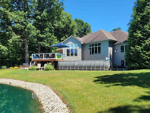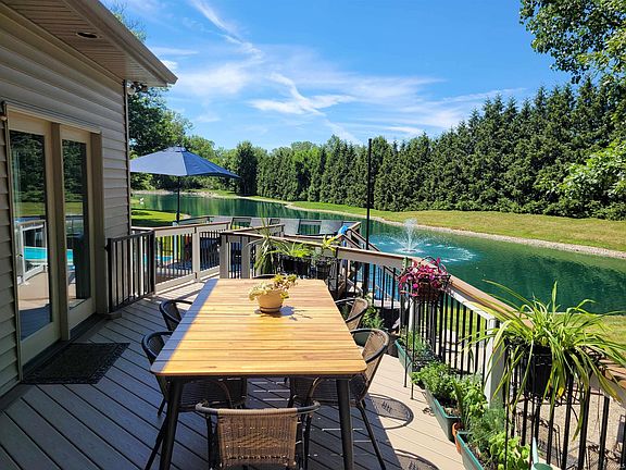 An Oasis...A Hidden Gem! 2+ acres bordered with private woods, overlooking the beautiful shared stocked pond, Trex deck, fire pit area, 12x24 above ground InTex saltwater pool, a walk-through flower garden, raised gardens with an irrigation system. Custom built 4 bedroom, 2.5 bath, 2212 sq ft Ranch w/1900 sq ft finished daylight basement. Features: 10 Ft ceilings, foyer, upgraded flooring, great room with floor to ceiling brick fireplace, bookshelves and picture windows. The gorgeous kitchen has custom cabinetry, granite counter tops, bar top, island, newer appliances, double door hall pantry and oversized dining area with picturesque views through the glass sliding doors to deck. The 2nd set of doors off the deck open from the spacious bedroom & bath suite featuring double sinks and walk-in closet. Open railing to the enormous basement with ample storage closets, 1/2 bath, 4th bedroom, multiple entertaining areas with more cabinetry and wet bar. Convenient 3 Car Garage, Newer: Furnace, A/C, Water Heater, Sump Pump, Saltwater Chlorination System for Pool