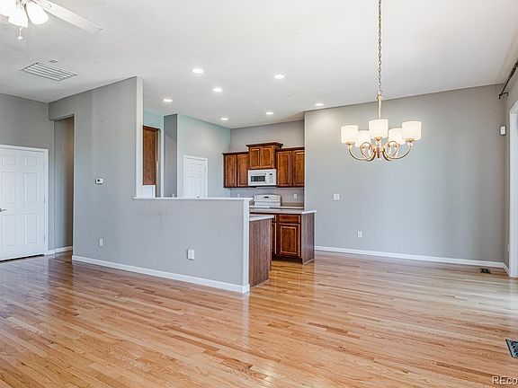 Fantastic Location backing to greenbelt and walking trail in Anthem Ranch, 55+ community. Steamboat Model with 4 bedrooms, 3 baths with partially finished walkout basement and large covered deck. Home boasts a plethora of upgrades including gorgeous stone fireplace, extended hardwood floors, french doors to master bath, mature lush landscaping, extra cabinets and laundry sink in large laundry room, ceiling fans, honeycomb shades, extra shelving in basement with tons of storage. Open floorplan with family room with cozy fireplace, eat in kitchen with island and rollout drawers, pantry, large master with 5 piece bath, 2 additional bedrooms on main level and one extra in the basement with 3/4 bath. Walk to the 30,000 sq ft rec center with over 100 clubs and over 48 miles of trails. Structural floor in walkout basement! Large basement woodworking shop, with 220 power. Best deal in Anthem Ranch, Hard to find a home like this in a peaceful setting.