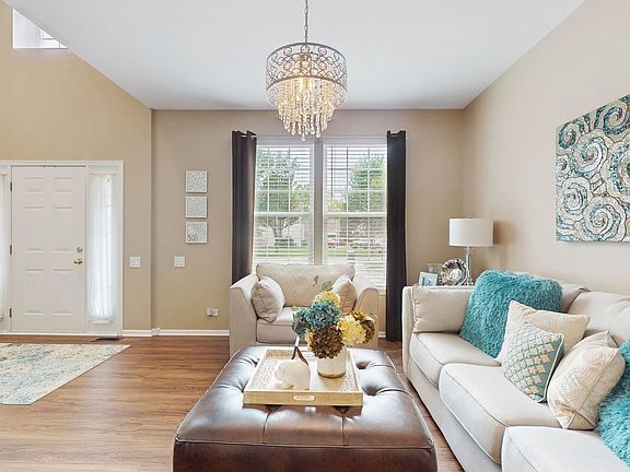 Welcome to home ownership at its finest! This beautifully updated 4 bed, 2.5 bath blends comfort, style and functionality. Step through the front door into a grand entryway with soaring vaulted ceilings & oversized windows that flood the space with natural lighting. The first floor features rich hardwood flooring throughout and an open layout ideal for both everyday living and entertaining. The stunning kitchen boasts stainless steel appliances, granite countertops, 42' cabinets, upgraded fixtures, new backsplash and abundant storage! Freshly painted throughout, the interior also features brand new carpeting, custom light fixtures and window treatments. The spacious primary en suite offers a luxurious escape with vaulted ceilings, walk-in closet, dual sink vanity, soaker tub and separate shower. The full basement is roughed in for a 3rd full bath, offering endless potential future living space. Off the kitchen, duel french doors lead to a bright four-season room, which opens to opens to a professionally landscaped backyard with custom patio pavers, exterior lighting and stylish black iron fencing- perfect for keeping everything pet safe and yard secure. This one you don't want to miss- schedule your showing today!