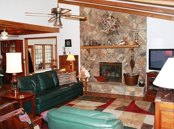 PRIVACY, SERENITY & CONVENIENCE..Gorgeous acreage, so secluded yet so close in -Stocked Pond, 7.03 partly wooded acres, great house- this is RARE combination. The home is in Excellent condition, 3 Bedrooms, 2 baths with a full basement. The rustic family room offers a stone fireplace and a cathedral ceiling with solid poplar wood beams from the property. The heated sun room is so relaxing with wonderful views and offers special no-fade glass. The home offers nice sized bedrooms & the master has a walk in closet. The full basement has lots of shelving, storage and 2 car garage. The exterior features are numerous! Enjoy a Rocking chair front porch with a peaceful view or a quiet back deck off the sun room. The large pond is stocked and ready for fishing. There is an extra 840 sq ft workshop/garage with electric, water & an air compressor. Enjoy the wildlife, go fishing, take in nature with blooming trees & greenery all around. Home warranty Included! Excellent convenient location between JC and Bristol near Bristol Motor speedway. First time offered at this price~ don't miss it!