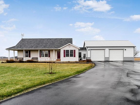 Wonderful private ranch situated on over 9 tranquil acres (6 tillable)! Drive up the new black top driveway & into your 30X40 heated garage. Interior just freshened up with new paint throughout living room & kitchen! Also, new Anderson windows have been installed and a new roof (2 yrs old)! Just off the cozy living room you can access the backyard, covered patio, deck, and your new pool! The lower level has its own entrance off the back deck and features a full bath, bar & living room perfect for entertaining! Need extra storage no problem! Two pole barns 56X64 (has shop/office) 30X40 great for horses!! This gem will not last, set up your showing today!