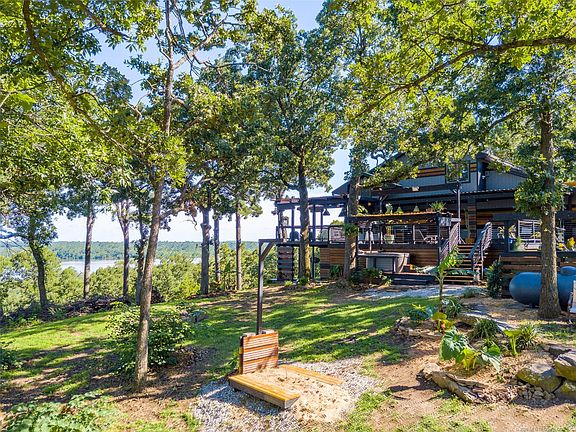 Beautiful 3000+ sq ft home with gourmet kitchen, high end European finishes overlooking the lake with 12.2 acres to play. Custom stone and beautiful woodwork throughout, quartz countertops, wrap around deck with lake view, ATV trails to shoreline, custom pergolas, hot tub, summer kitchen, fire pit & outside shower, zen garden & horse shoe pit. Inside, a full custom bar awaits in the walkout basement, built in wine storage, kegerator and pool table, and possible 4th bedroom. Extra 13.51 acres available