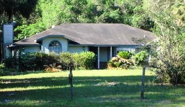 Fantastic REO investment opportunity! The charming home sits on 2.62 acres and is complete with 8 rooms. The spacious living room, kitchen and bonus room all boast high ceilings. The living room also includes a brick fireplace and a ceiling fan. The nice kitchen features wood cabinetry, white countertops, high ceilings and a breakfast bar. Formal dining room and spacious bedrooms. Carpet and tile flooring throughout. The terrific backyard showcases a great patio area and a large, screened, in-ground pool: perfect for outdoor gatherings! Large attached 2-car garage with a Palladian window. The property at 40916 Emeralda Island Road, Leesburg, FL is a residential, single-family, detached property with 4 bedrooms and 2 bathrooms, built in 1991 and 2,210 square feet.