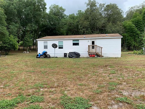 If a country setting with city conveniences is what you desire, this Charming, move-in ready manufactured home is a must see! This 3 bedroom, 2 bath home is situated on a beautiful 2.0 acre site in a quiet, idyllic non-HOA, non-CDD, AR friendly Dade City community conveniently positioned near shopping, theatres, restaurants & major interstates. The easy and natural flow of this charming home makes the spaciousness of this 1,296 square foot home feel even grander. The interior boasts 3 bedrooms (split plan), 2 full bathrooms, an open floor plan, a great room, casual dining area, inside laundry room w/upper shelving & door for back yard access, window blinds, a trendy color pallet and beautiful vinyl wood look flooring throughout the home. The kitchen has ample cabinet and counter space, granite look formica countertops & subway tile backsplash, double bowl stainless sink, pendant light, stainless steel appliances, peninsula w/butcher block counter top & a separate dinette space. The master bedroom is 13x12, offers a large walk-in closet w/closet organizers. The master bath has double vanities w/quartz tops, bronze faucets, upgraded light fixtures, corner soaking tub & good sized shower. The natural foliage, vegetation and mature oak tress provide a peaceful backdrop. Your chickens will love their red & white barn designed coop, the 40' container & shed provide ample space to store lawn equipment or feed for the chickens/livestock. The fire pit area offers a perfect setting for family gatherings to relax and enjoy roasted marshmallows or s'mores. Don't be fooled by this rural setting as it is conveniently located from everything you may need. No Deed Restrictions, CDD or HOA fees! We invite you to come take a look! The home is fully electric (no gas) / Well and Septic Tank.