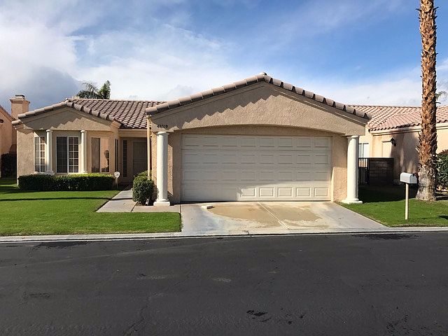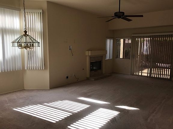 This is a very well maintained single-family residence in the Golden Sun Estates development. Wonderful floor plan offers spacious and comfortable layout, just over 1,500 ft. featuring three bedroom, two baths and inside laundry area. Kitchen features breakfast nook, plenty of cabinetry space and natural light. The Great Room boasts a formal dining area and living room accented with a fireplace. Master bedroom features vaulted ceilings, private bath and access to backyard. Master bath has dual vanities, standing shower/tub and two closets. Easy to maintain backyard with block wall, covered patio and lush landscaping. These is a two car garage with epoxy floors and convenient side yard. Gated community offers tennis/basketball court, two swimming pools/spas.