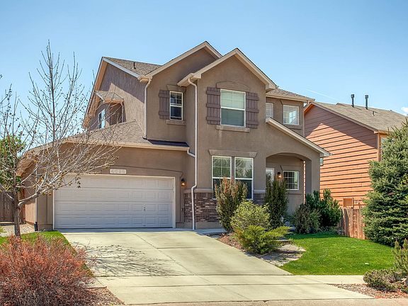 Beautiful 2 Story home in the highly desirable Springs Ranch community, perfect for the sports enthusiast! Offering easy access to Springs Ranch Golf Club, Security Service Field; home of the Sky Sox and the upcoming Pro Soccer team, Colorado Springs Switchbacks. This home features 4 bedrooms, 3 bathrooms, 3+ car garage, and landscaped fenced backyard. A covered front porch greets you upon arrival and leads you to a two story entry with gleaming hardwood floors and formal dining room or office. The heart of the home is the open kitchen with smooth Corian countertops, large island, hardwood floors, oven/range, dishwasher, microwave, ample cabinet & counter space. The kitchen opens to the large breakfast nook & walk out family room w/ gas fireplace, so you never have to feel too far from it all. Enjoy Summer barbecues on the large patio and deck in your fenced & landscaped backyard. Back inside, head upstairs to large Master suite, with walk-in closet & adjoining 5pc bath featuring; dual vanity, large soaking tub & free standing shower. Completing the the upper level are 3 secondary bedrooms & full bath with dual vanity. The unfinished, basement provides an additional 1849 sqft to design to your needs. Additionally, this lovely home allows for an easy commute to all military bases & is just blocks away from schools, parks & sporting centers; with easy access to the Powers Corridor offering endless options for shopping, dining & entertainment. This is not just a house, but a home where memories are made & dreams are fulfilled & it is awaiting you!