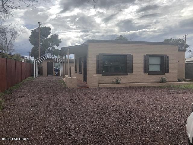 This updated, very well maintained home in central Tucson has A/C in the front 2bdrm 1 ba. home and mini split in the 1bdrm 1 bath rear separate unit. New paint, carpet in the bedrooms and tile in the living rm, kitchen and bathroom. Jack n Jill bath Walk in shower features custom tile and glass shower doors. Fenced in back yard with metal porches coverings. Live in the front house and rent out the back. Great potential for income.