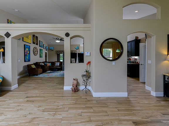 Arches and pillars greet you at the front porch along with beautiful landscaping. A bright dining and living room combination at the front of the home. A bonus large family room with plenty of space for the family to gather. A completely updated kitchen with stainless steel appliances, granite counters, dark wood cabinets, a closet pantry, and recessed lighting above. Three guest bedrooms that are all a comfortable size with tiles floors and a ceiling fan above. The master bedroom is very large and holds a tray ceiling for an added touch. The beautiful master bath has dual sinks, a garden tub, walk-in shower and walk-in closet. The screened in porch is the perfect spot to relax and is large enough for entertaining if needed. The property sits on .76 acres and is completely fenced in!