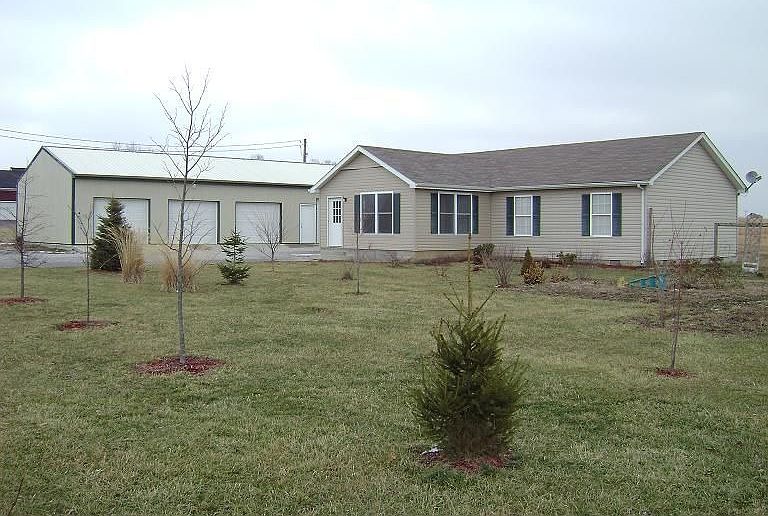 2002 built country home with a 30x60 4 car detached garage and 2.19AC (mostly fenced). This home features a vaulted ceiling, 3 BR, 2BA (potential for 4th BR), office area, finished landscaping, enclosed patio and open deck overlooking a beautiful stocked pond. Also included is a partial walkout basement. This home is located neat the local school system and is only 30 minutes from the Louisville area.